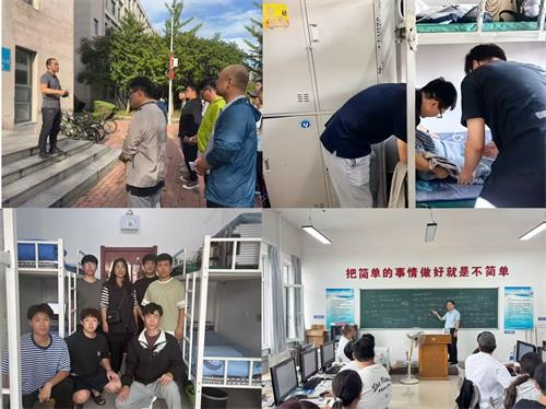 本次活动覆盖学院全体党员教师与在校学生,活动地点分为学院各专业学生宿舍与教室两大区域。在党员教师进寝室活动中,大家按分组前往负责宿舍,开启内务整理指导工作。在各宿舍内,党员教师以示范教学的方式,手把手指导学生叠被、摆放物品、清洁卫生。过程中,教师们还与学生亲切交流,深入了解其学习规划与生活需求,耐心解答学业困惑与生活难题,以“引导式”沟通替代“指令式”要求,充分尊重学生个人习惯,让内务整理成为师生情感交流的纽带。