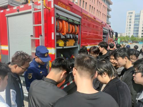 最后,参与演练的教师和同学在消防员的带领下,参观消防车以及消防安全用具,加深了对消防安全设施的了解。