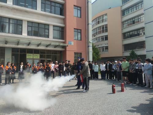 首先,由安保部衣彬部长介绍了本次活动的重要意义,通过实战演练打通安全教育的“最后一公里”。同时向师生隆重介绍了丹东市消防局特勤大队于队长等多位专家组成的技术指导团队。在热烈的掌声中,消防局专家正式开启消防安全知识讲解环节,着重介绍灭火器的使用方法,并现场进行演示,同时邀请学生进行灭火实操体验,学生积极参与,通过实际操作掌握了灭火器的正确使用方法。